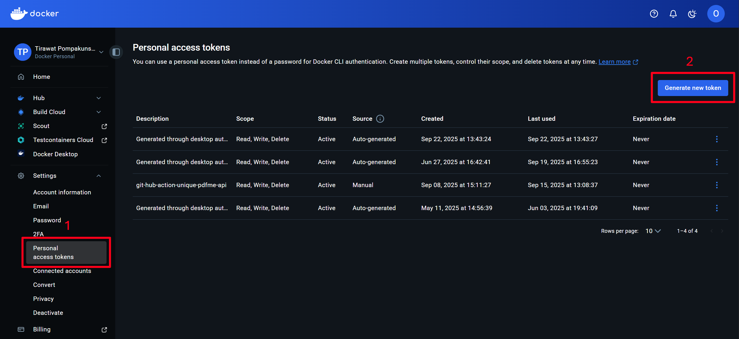 หลังจากนั้นเราก็จะได้ access token ของเราเรียบร้อย จากนั้นให้เรา copy สิ่งนี้ไว้และเก็บไว้ให้ดี เพราะเราจะต้องนำสิ่งนี้ไปใส่ไว้ใน Github Actions Secrets and variables ในอนาคต