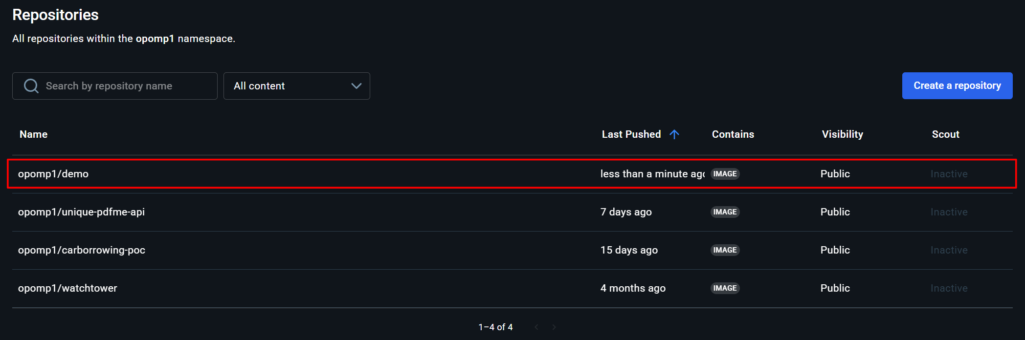ตอนนี้ถ้าหากเรากลับเข้าไปดูที่เว็บไซต์ Docker Hub ใน Repositories จะเห็นได้ว่าตอนนี้ image ที่เราได้สร้างและ push ไปนั้นขึ้นมาอยู่บน Docker Hub เรียบร้อยแล้ว