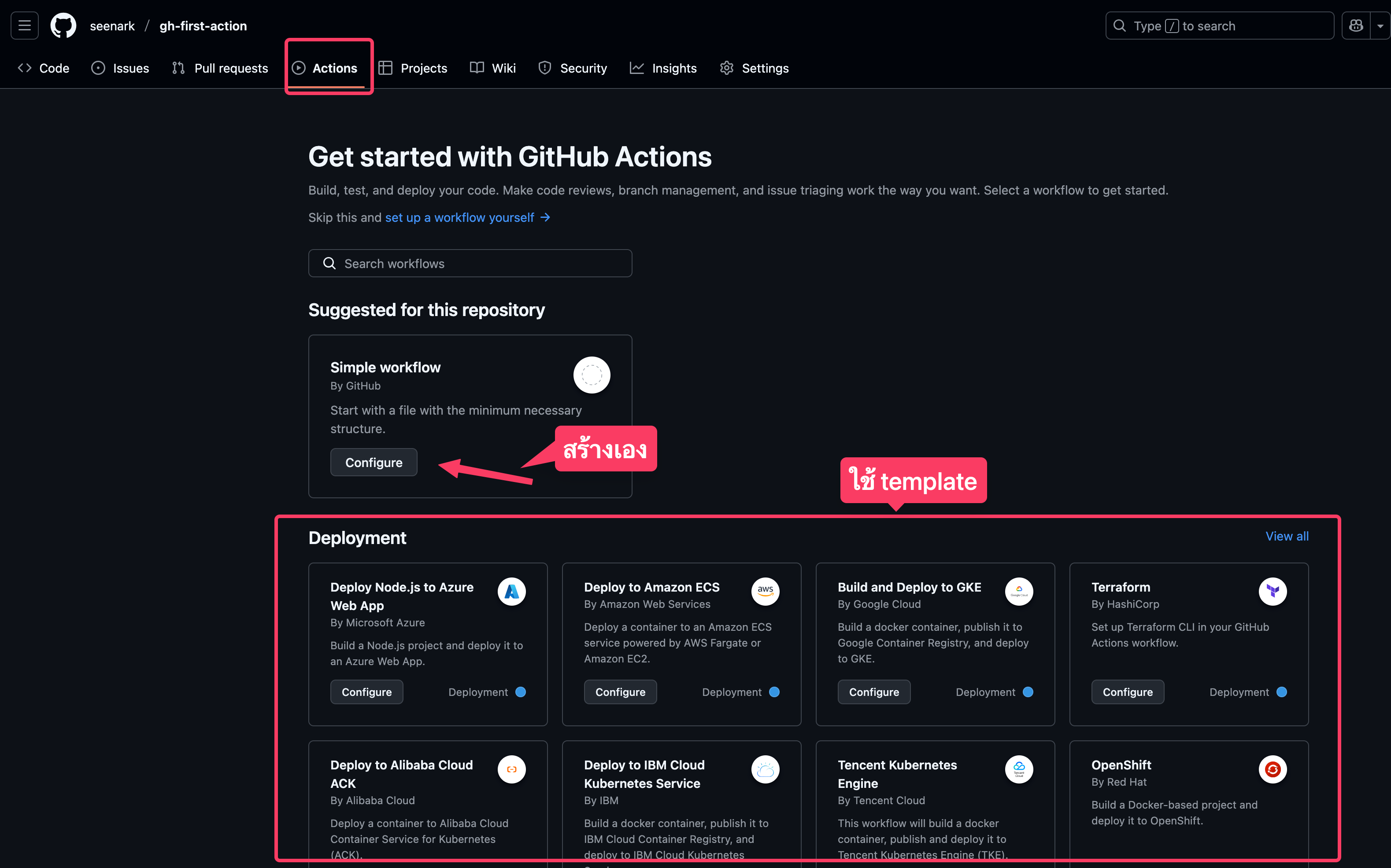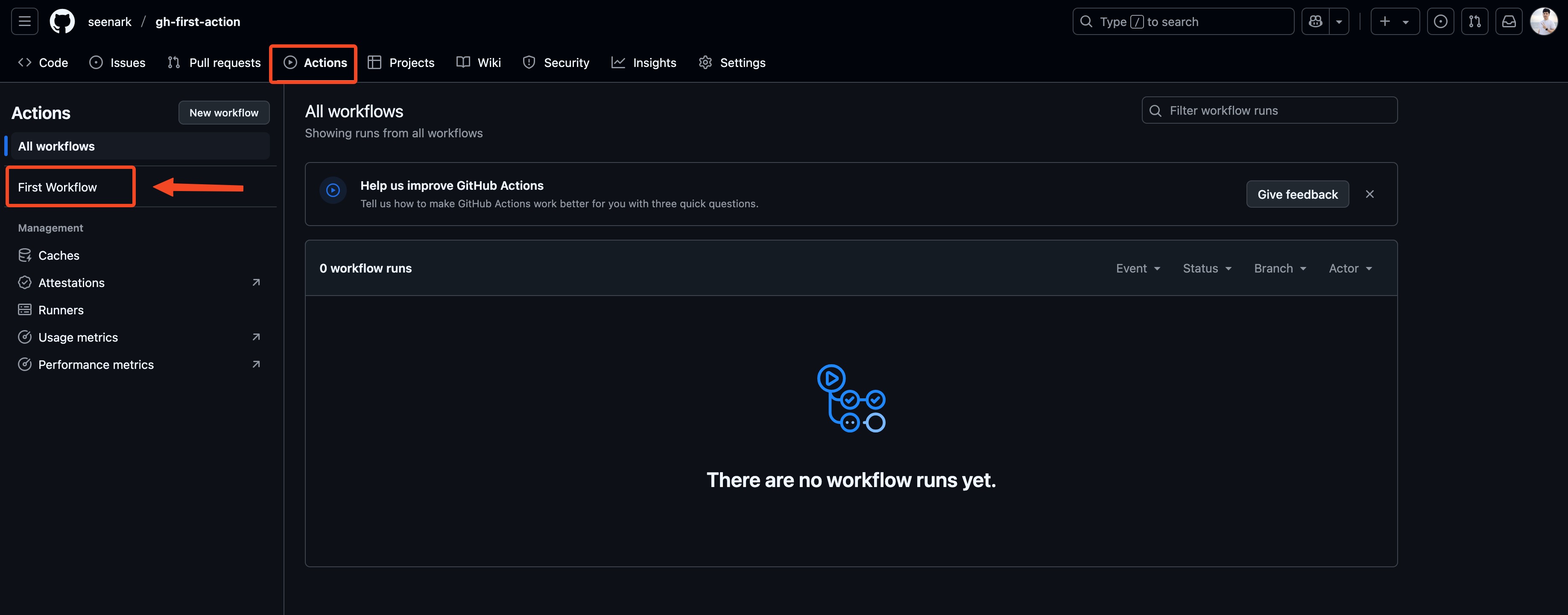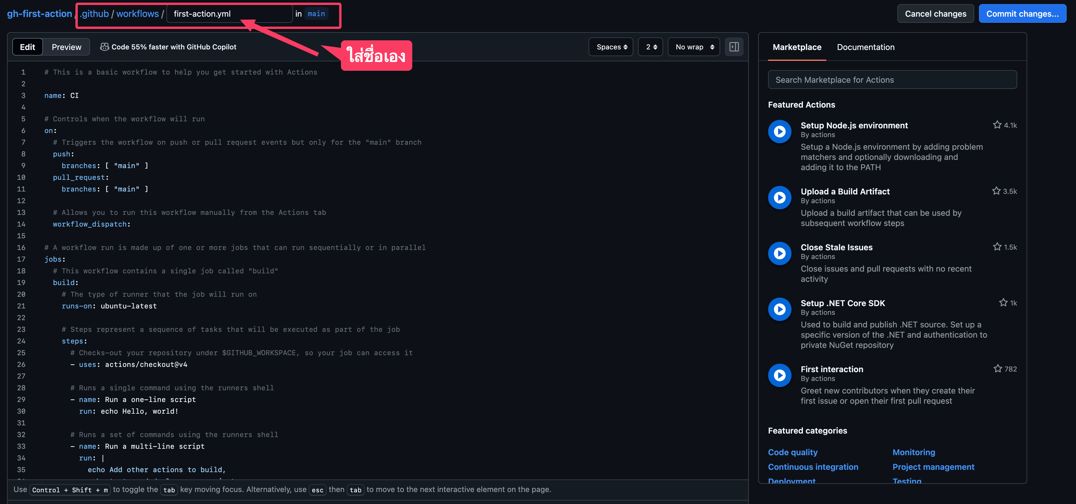 สร้างไฟล์ชื่อว่า first-action.yaml ใน folder .github/workflows