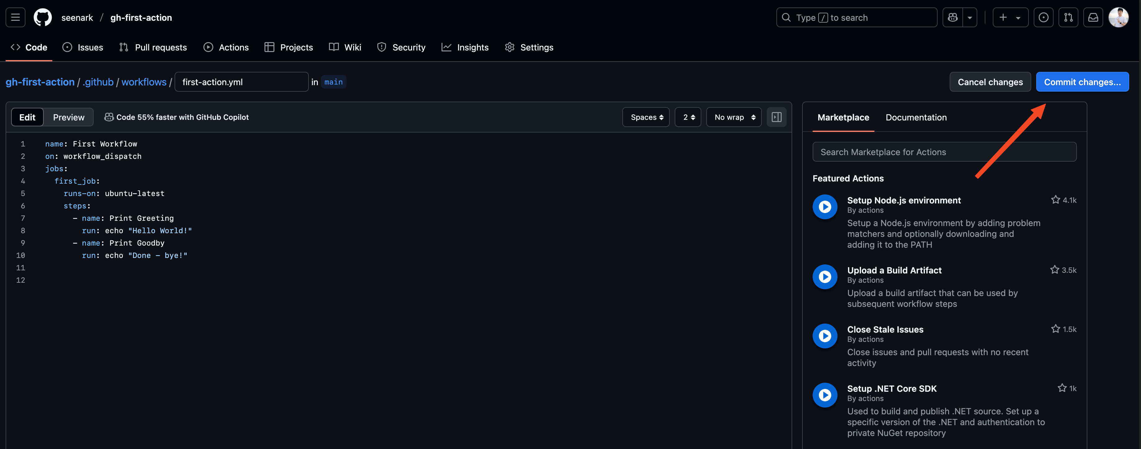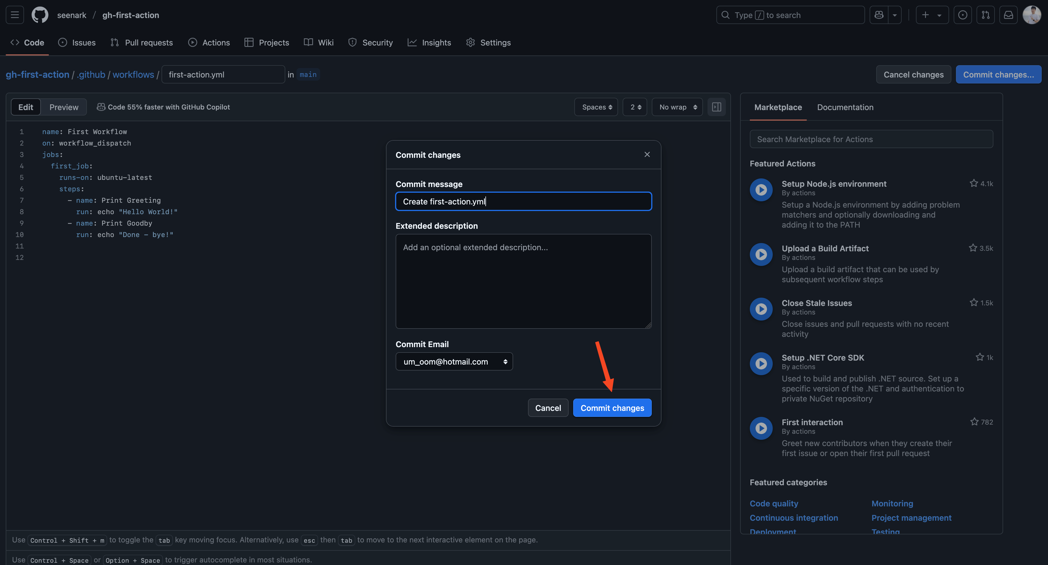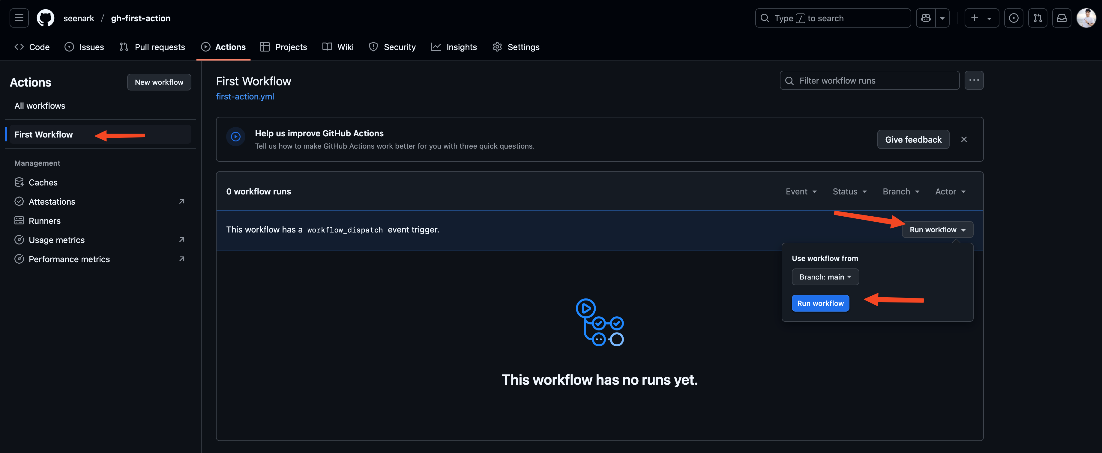 สร้างไฟล์ชื่อว่า first-action.yaml ใน folder .github/workflows