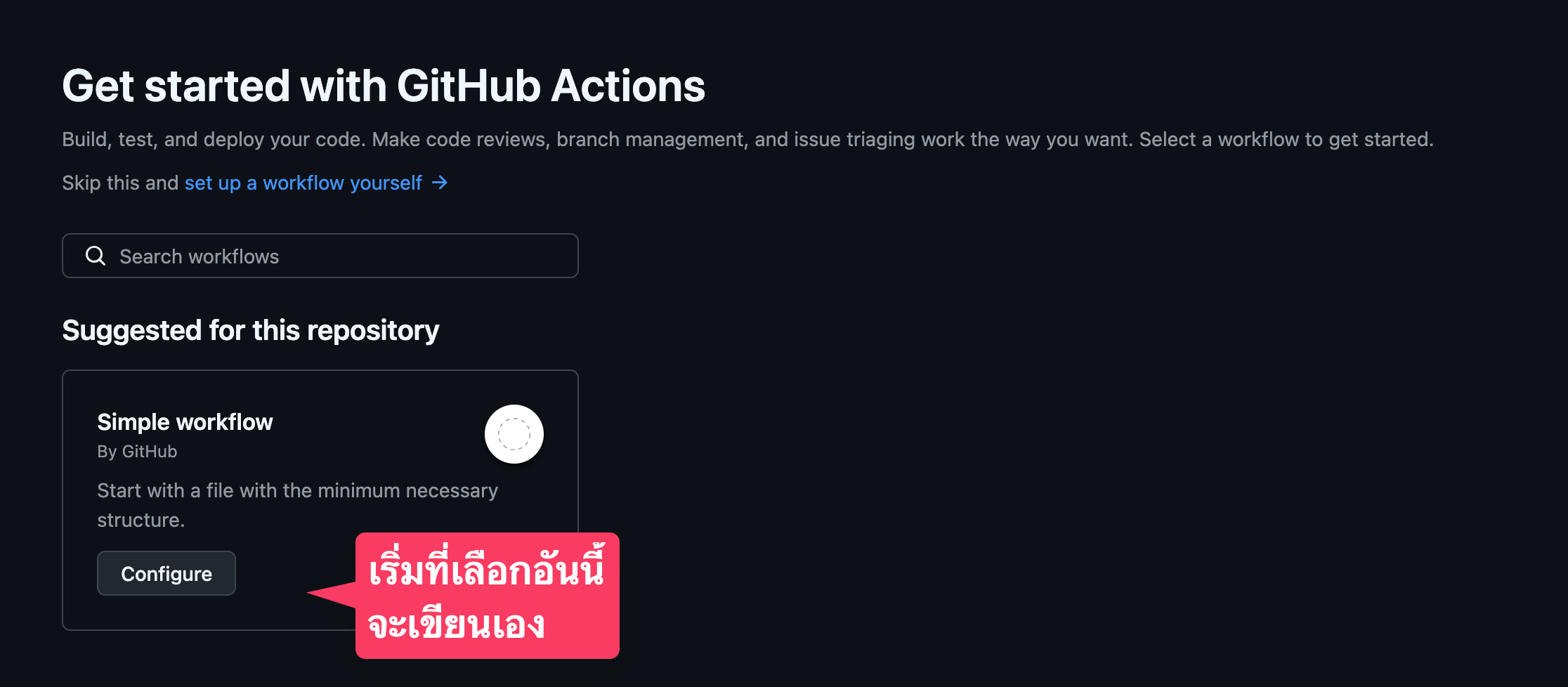 ในที่นี้ workflow_dispatch คือสั่งแบบ manual on: มี value เป็นอะไรบ้างเดี๋ยวไปดูกันทีหลัง