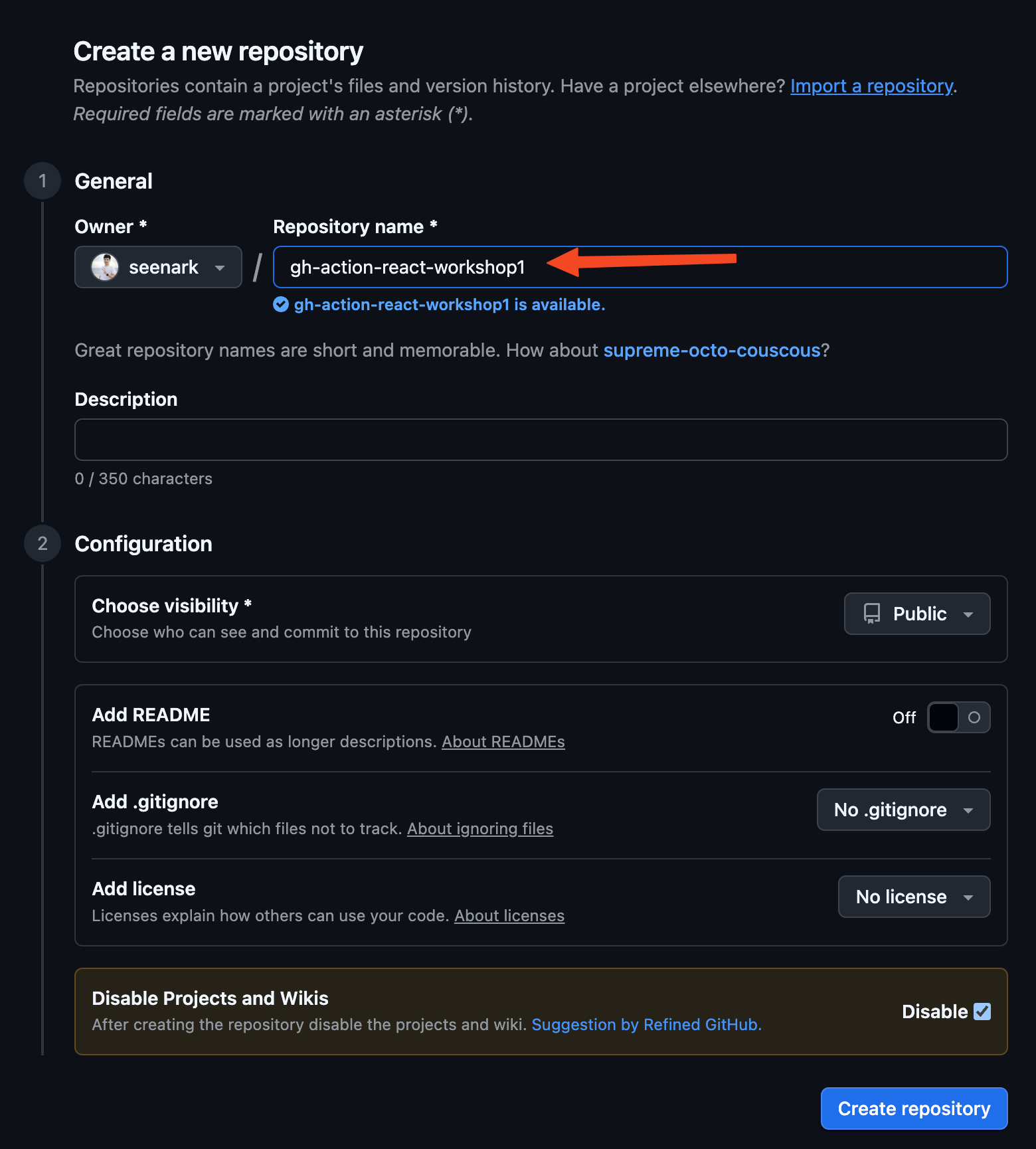 cd react bun install bun run devจากนั้นก็ไปสร้าง repo ใน github