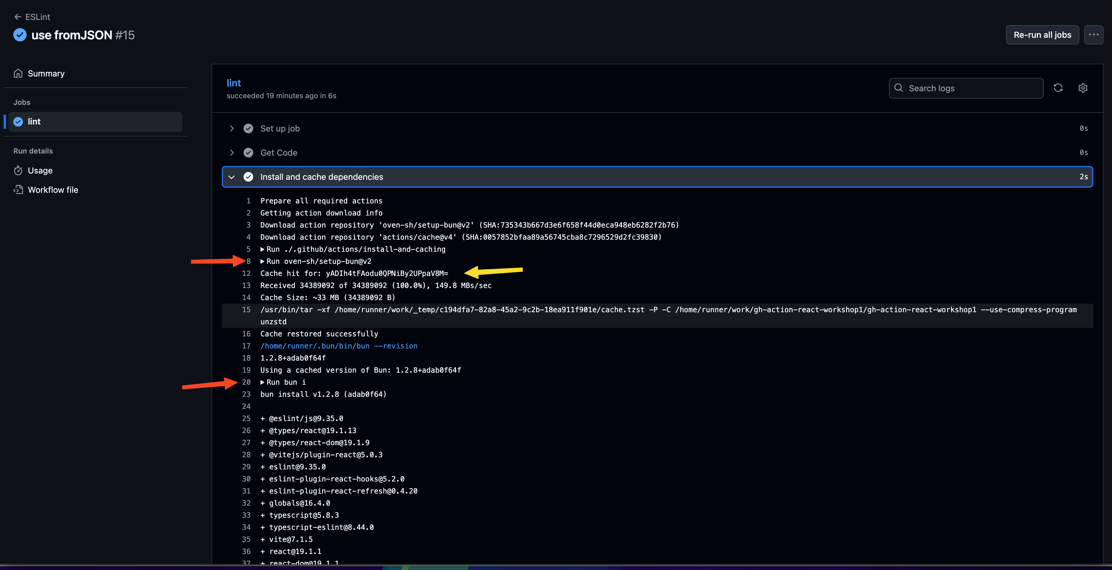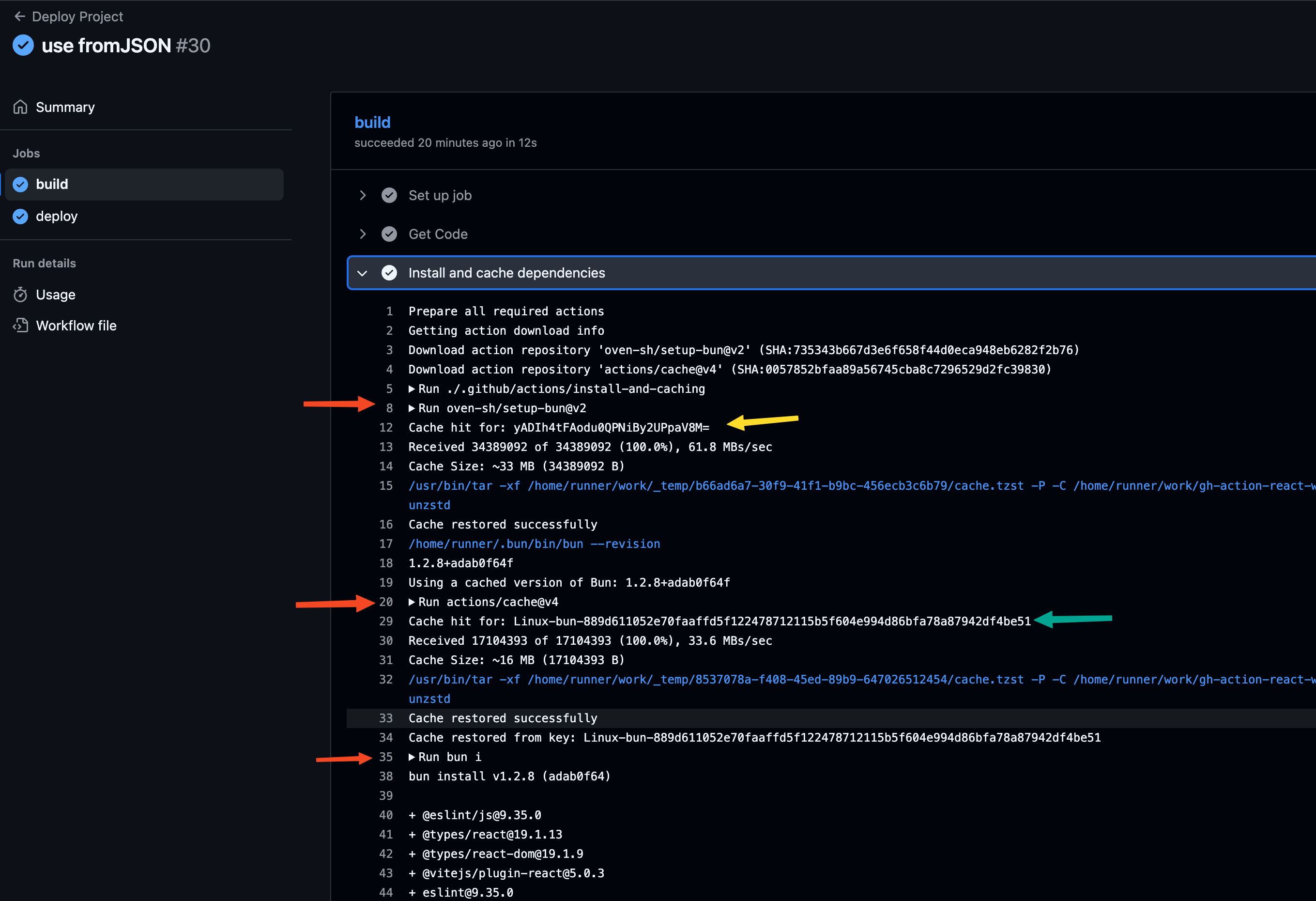 สิ่งที่เราต้องรู้คือ action setup bun มันทำ caching ให้ด้วย ฉนั้นที่เราเห็นว่า cache-hit นั้น มันเป็นของ action setup bun ต่างหากละ